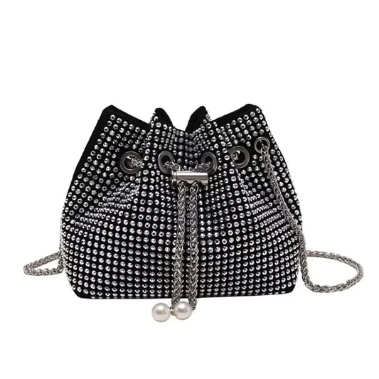 Bolso tipo cubo con diamantes de imitación, bolso de fiesta con cadena brillante, mini bolso cruzado para mujer