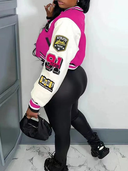 Chaqueta de mujer , chaqueta universitaria informal con estampado de letras y parches