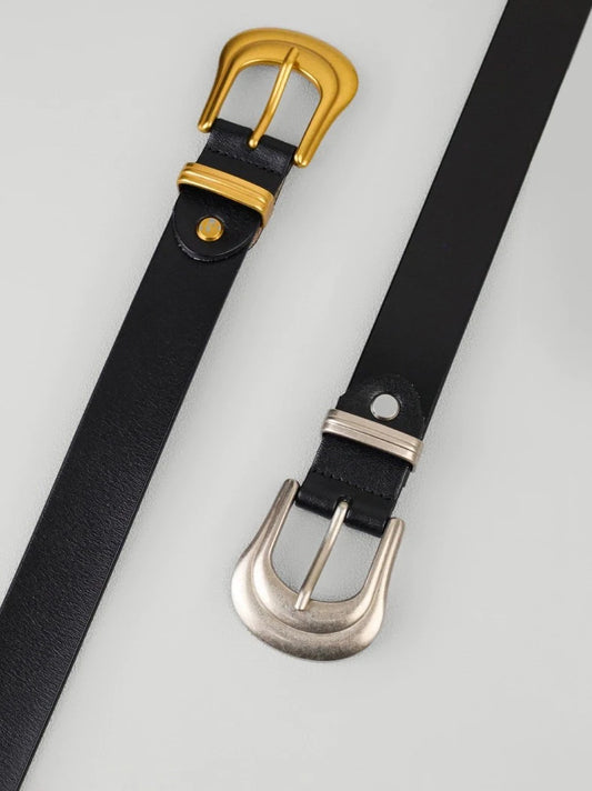 Cinturón de cuero PU con hebilla dorada para mujer