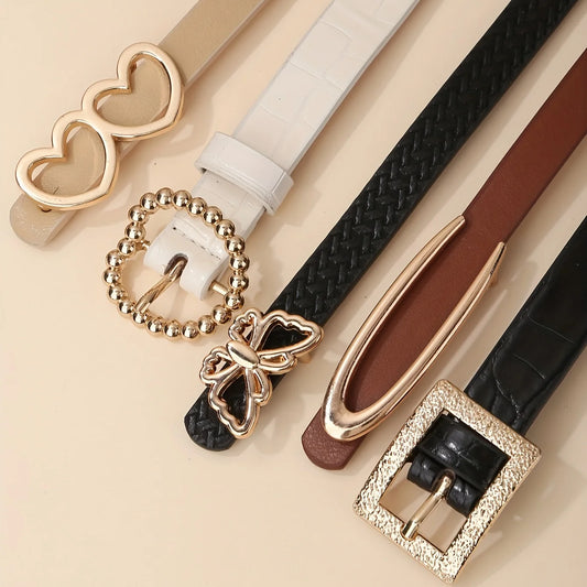 5 unids cinturones con hebilla de moda cinturón de cuero PU de Color sólido para mujer