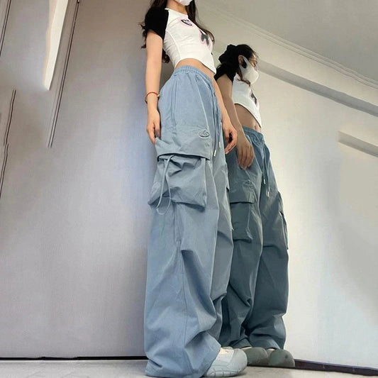 Pantalones Cargo para mujer, pantalón informal de cintura alta con bolsillos grandes, estilo Hip Hop, ropa de calle femenina, chándal holgado con cordón