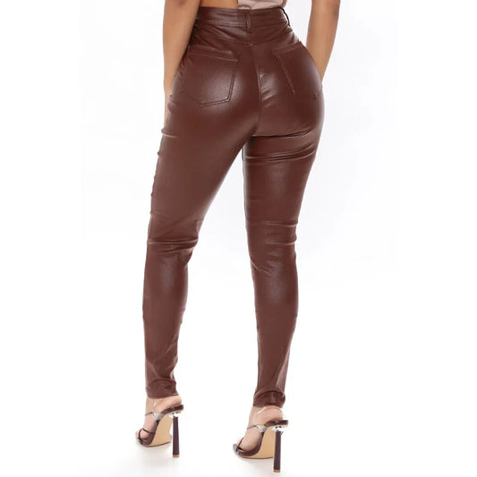 Pantalones largos Pantalones elásticos de cintura alta para mujer Pantalones de cuero