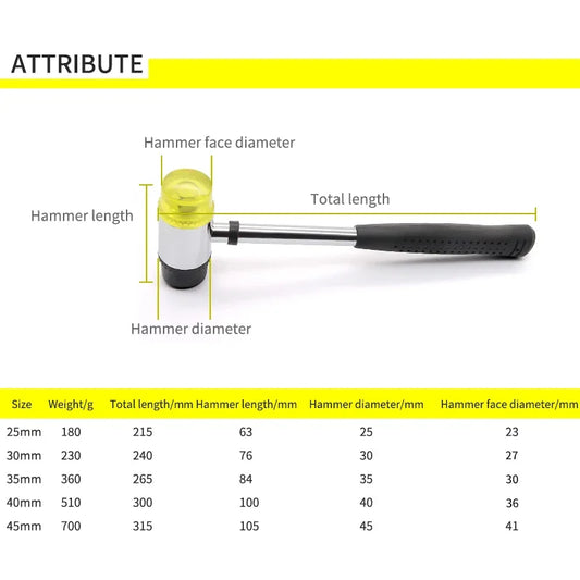 Martillo de goma de doble cara de 25 mm, 30 mm, 35 mm, 40 mm y 45 mm, multifuncional, para acristalamiento de ventanas, con cabeza de nailon