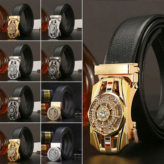 Cinturón para hombre, cinturón de cuero con hebilla automática, cinturón de lujo para hombre, decoración de diamantes de imitación