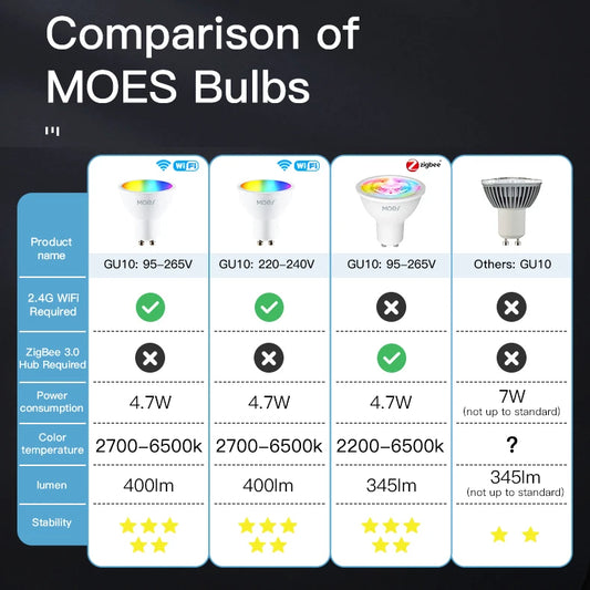 lampara GU10 WIFI bombillas LED inteligentes RGB C + W lámparas blancas regulables Smart Life APP Control bombillas de luz voz Alexa/Google