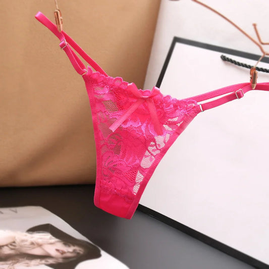 Tangas y Tanga de mujer, bragas de encaje con lazo de Color sólido, bragas transparentes, lencería Sexy para mujer, ropa interior para mujer