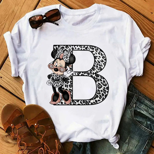 Camisetas con estampado de 26 letras para mujer, camisetas Disney 2024, camisetas casuales de verano de manga corta, camisetas gráficas para mujer, ropa para mujer