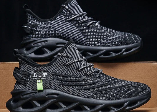 Zapatos Deportivos informales para hombre y mujer, zapatillas de malla de aire tejidas a la moda, calzado antideslizante negro, zapatos transpirables para correr