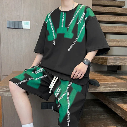 2024 Men's Casual Two Piece Sets Korean Fashion Short Sleeve T-shirt and Shorts Tracksuits Sports Streetwear Men's Clothing Sets