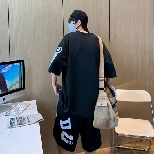 2024 Summer Men's Sets Japanese Fashion Streetwear Short Tracksuit Men Trend Clothes T-shirts Shorts 2 Piece Set Men