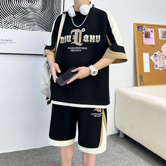 Men's oversized casual set, modern, North American, with prints, light and breathable, also suitable for sports