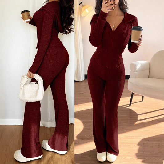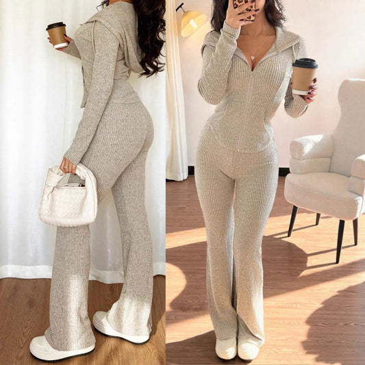 Women's autumn winter knitted 2 piece set long sleeve ribbed slit long top and high waist skinny pants fashion outfit
