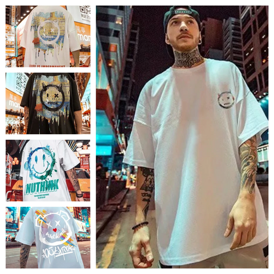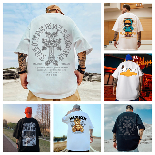 Men's oversized t-shirt, printed t-shirts, autumn and summer cotton, round neck short-sleeved t-shirts