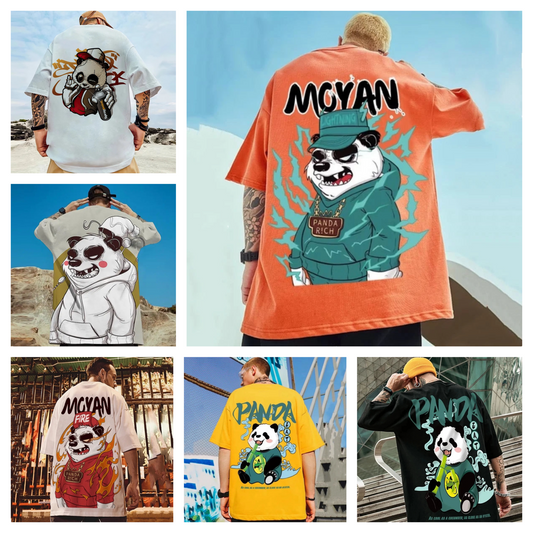 Kawaii vintage anime panda print t shirt men summer casual funny t shirts men short sleeve t-shirts plus size y2k clothes men