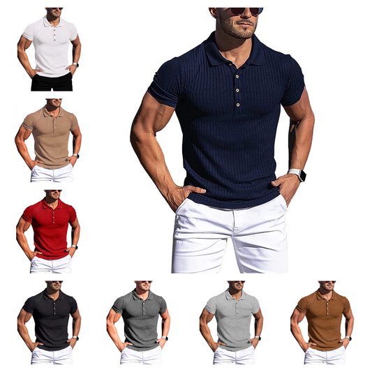 Summer New Men's Short Sleeve Polo Shirt Solid Striped Fitness Elastic Shirts Fashion Stand Collar