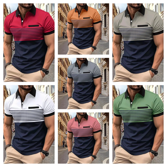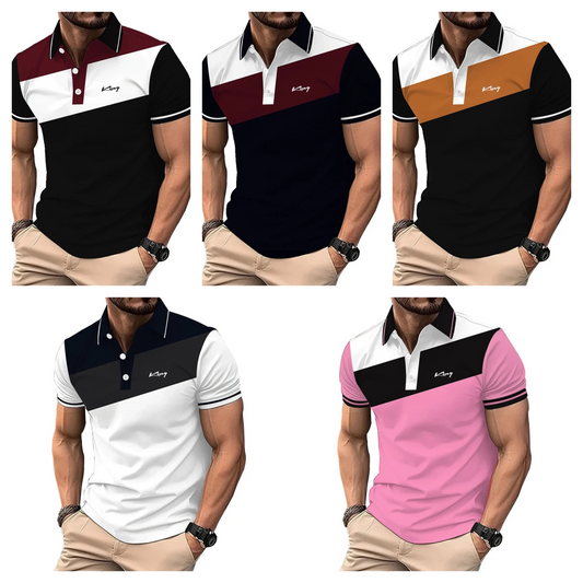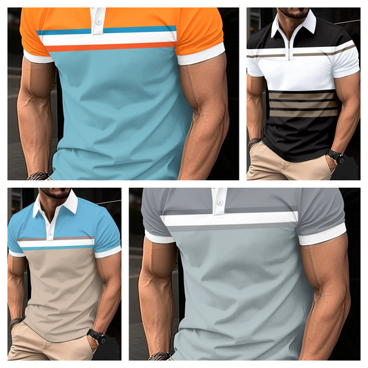 Men's short-sleeved polo shirt, summer T-shirt, intercoloured lapel