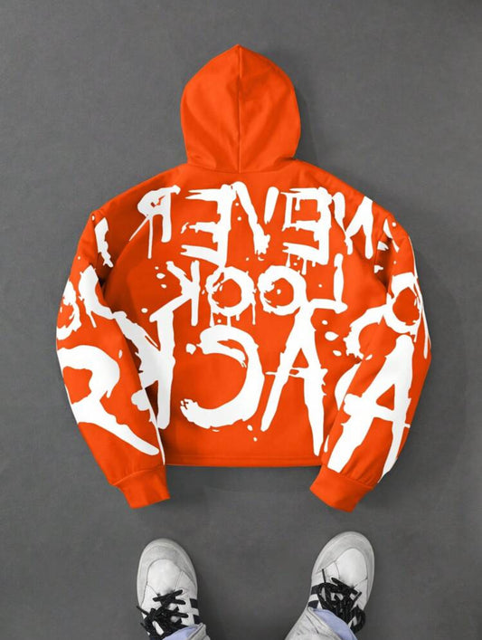 Sudadera con capucha corta de punto blanca con estampado de texto en inglés de grafiti de estilo callejero joven y fuente de grafiti de moda