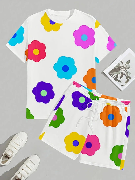 Nuevo conjunto de verano de todas las tallas, traje de hombre de mangas cortas y de pantalones cortos