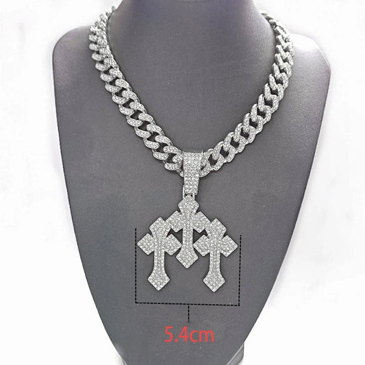 Nuevos collares colgantes con cruces apiladas heladas para hombres con cadena, colgante de joyería con diamantes de imitación