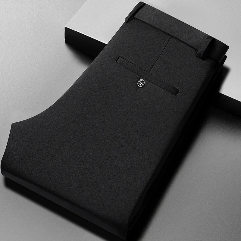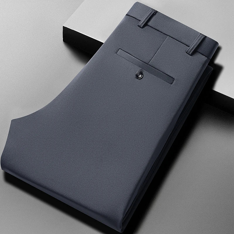 Pantalones de verano para hombre, pantalones casuales elásticos rectos finos sin rastro, sin tela para planchar, sensación sedosa y fresca