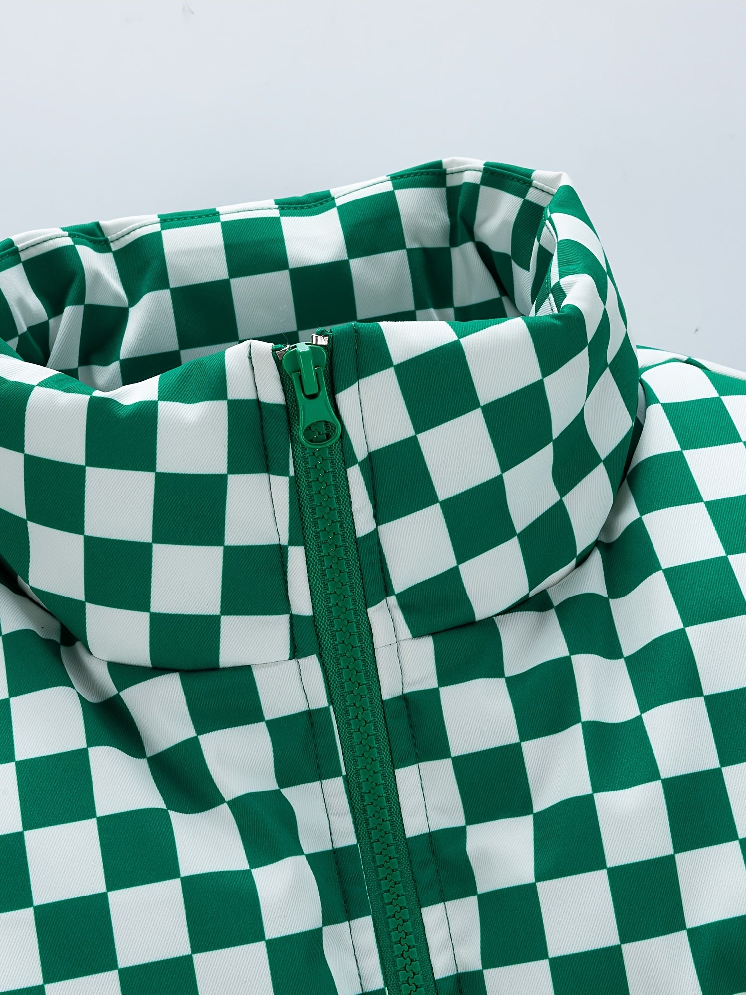 Chaqueta de invierno acolchada para hombre, verde y blanca, con diseño de cuadros, gruesa y aislada, con cuello alto