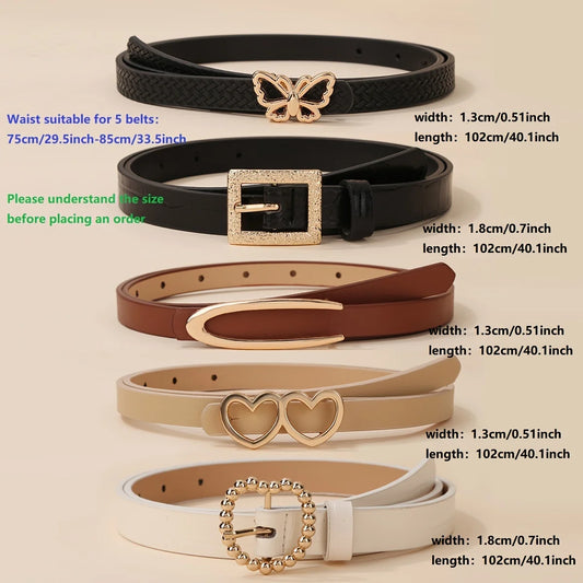 5 unids/set cinturones con hebilla de moda cinturón de cuero PU de Color sólido Vintage pantalones vaqueros casuales cinturón para mujer